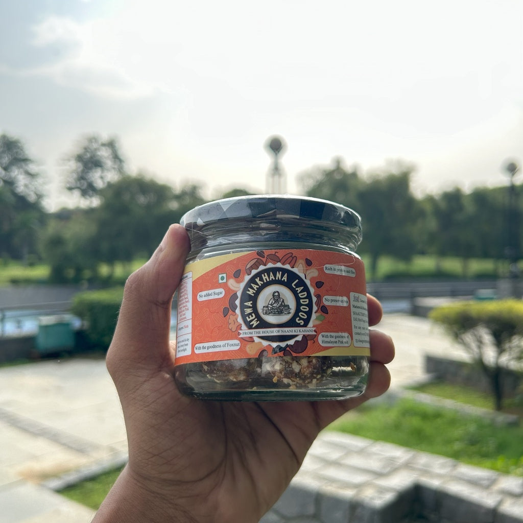 Nani ki Kahani's Mewa Makhana Ladoos are a delightful, wholesome treat that combines the natural goodness of dates, foxnuts, nuts, and seeds. Perfect for snack time or as a post-workout boost.